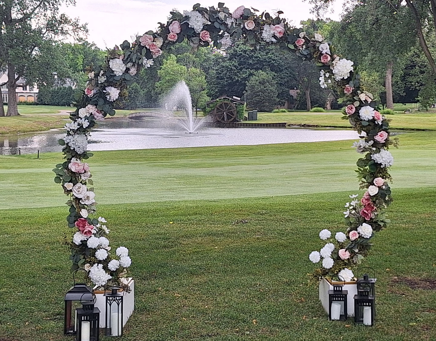 Mozack Wedding is our latest project, featuring the beautiful golf course wedding of Sarah and Ed. The ceremony was adorned with a stunning floral arch and a water fountain as a backdrop, while the reception featured a mix of high and low glassware centerpieces, with the ceremonial arch repurposed behind the happy couple. A sweeping balloon arch greeted the guests with the message "let's get this party started" as they celebrated the newlyweds.